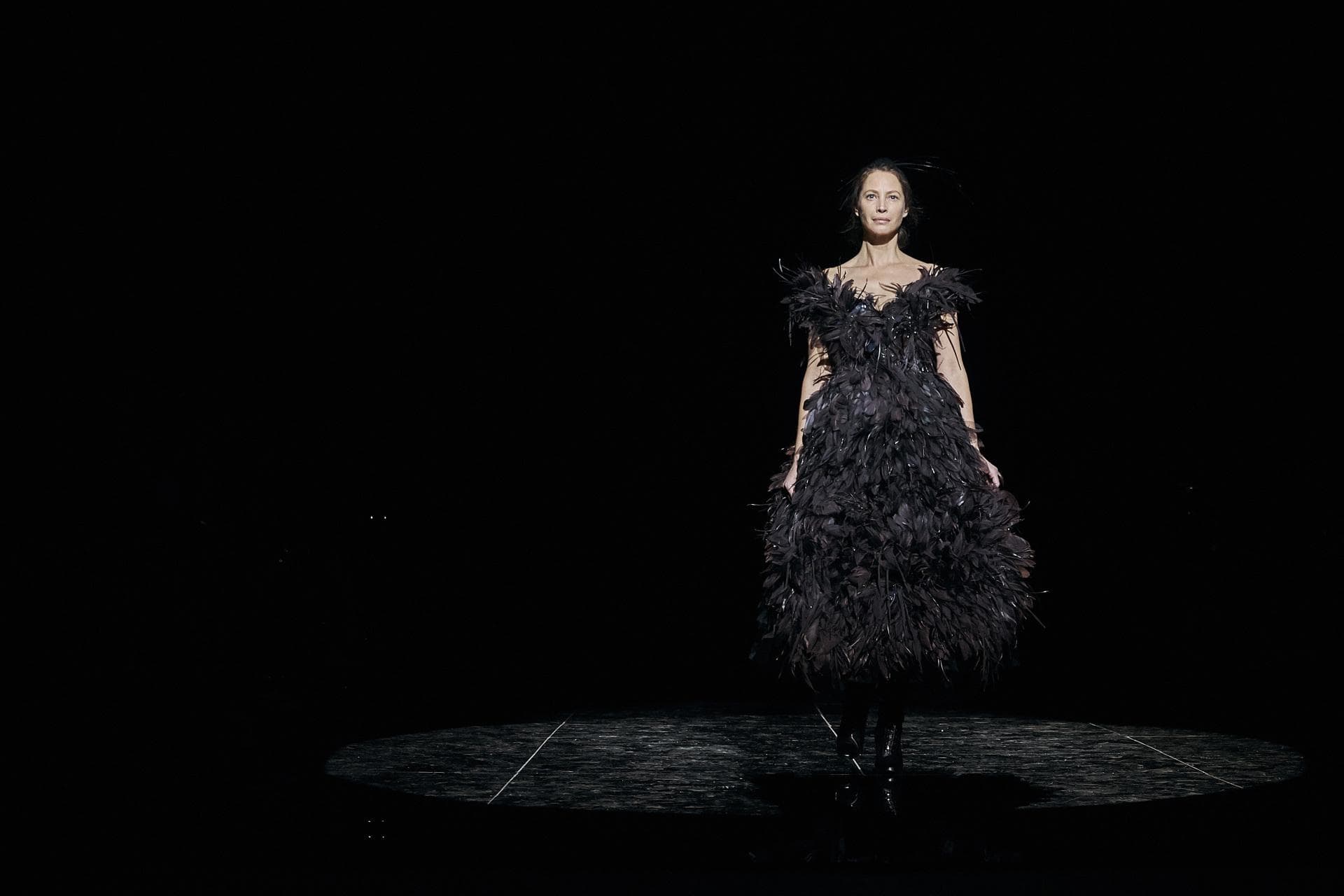 Christy Turlington, who not only closed the show but stopped time in a sleeveless black gown adorned in feathers. The IT girls had a lesson from a true great.